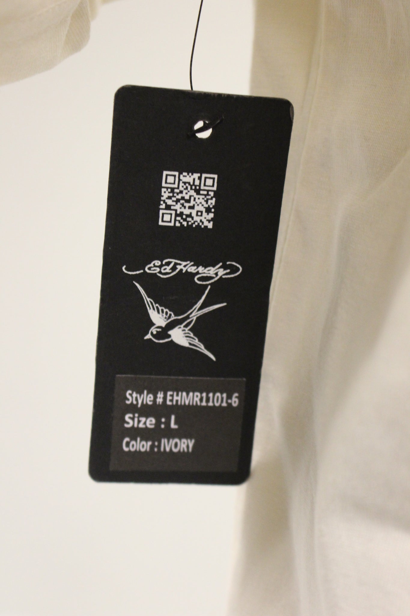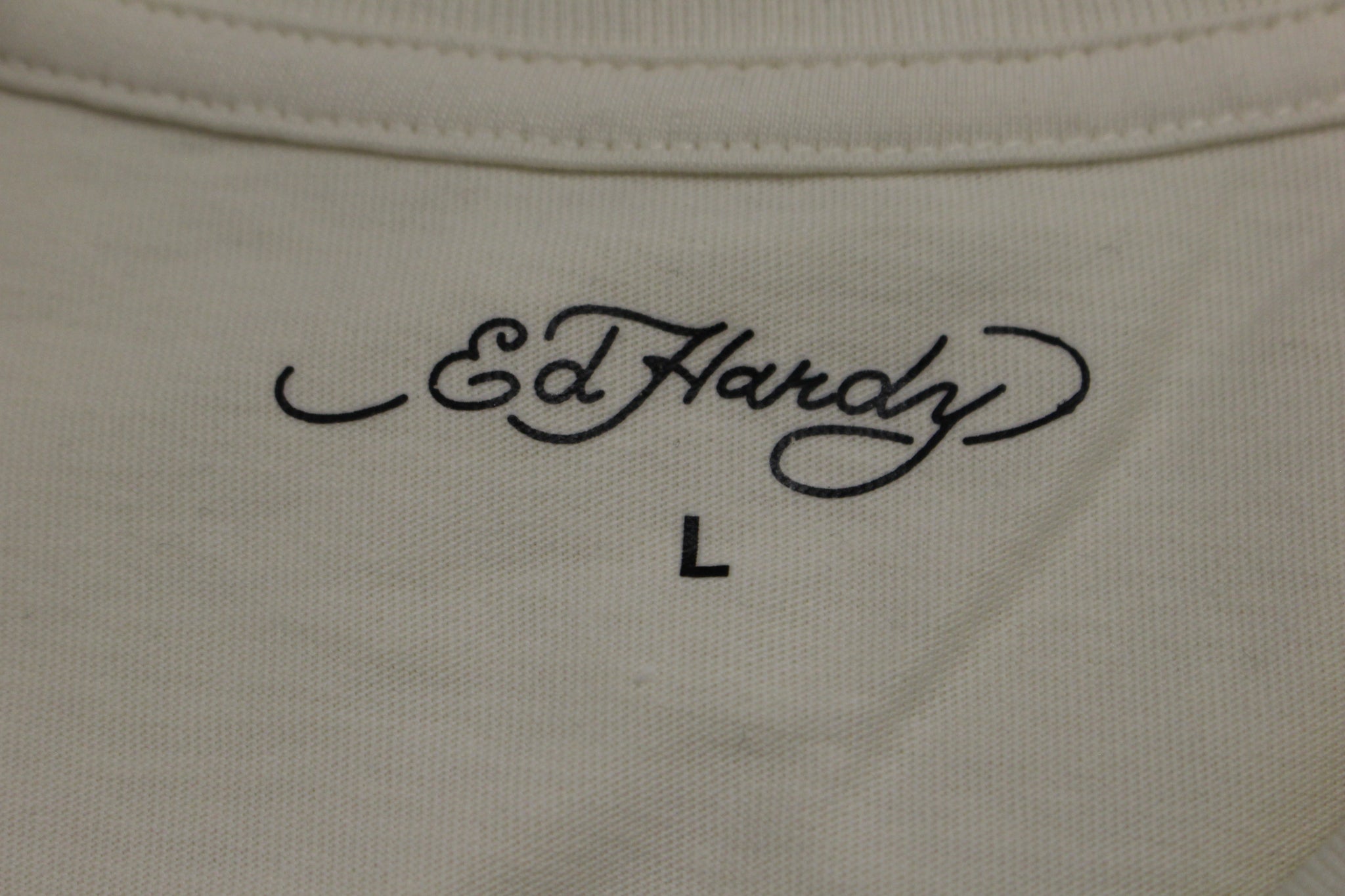 Ed by Ed Hardy Embroidered Chest LogoT Shirt - Large - Ivory - New