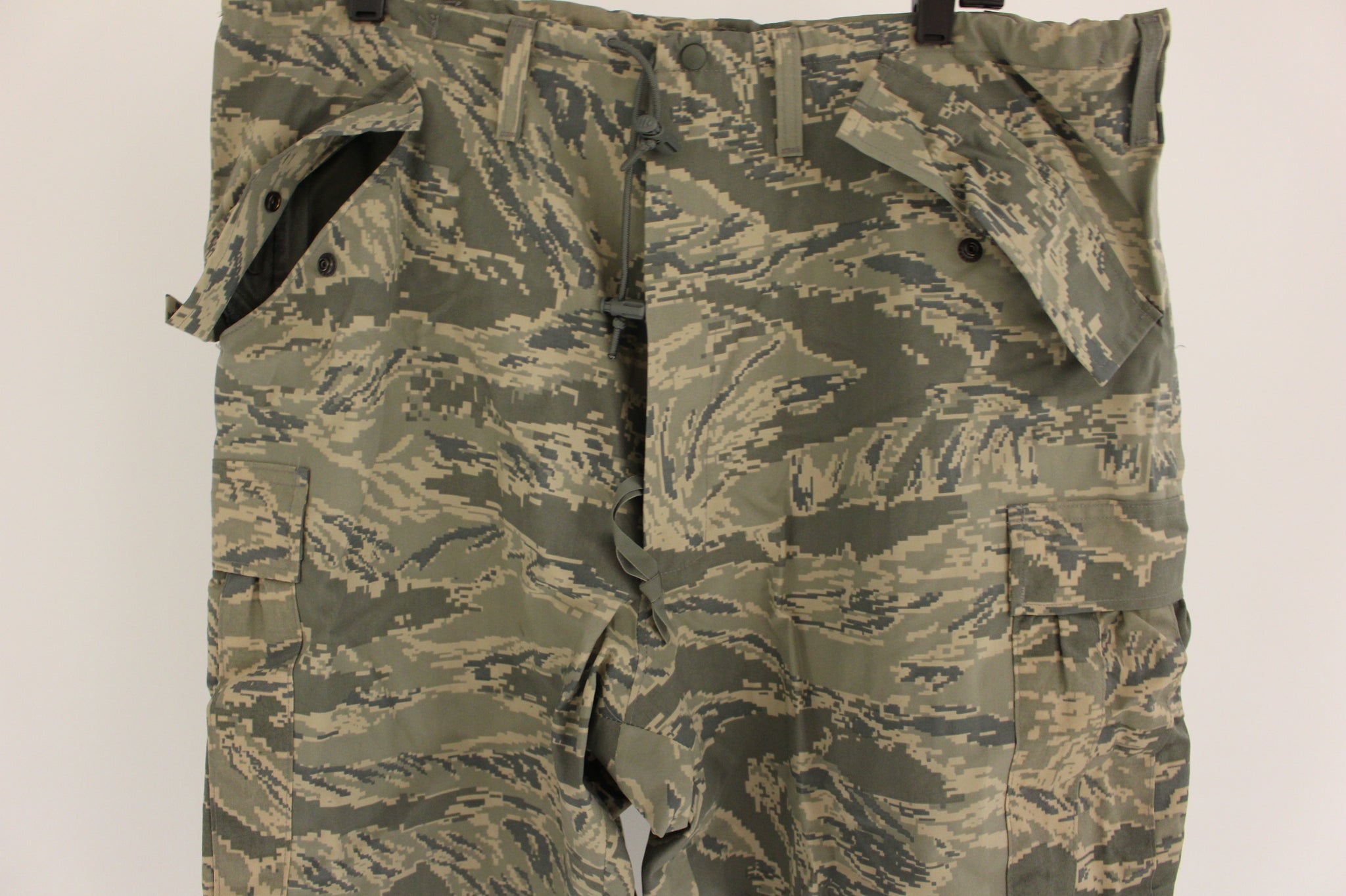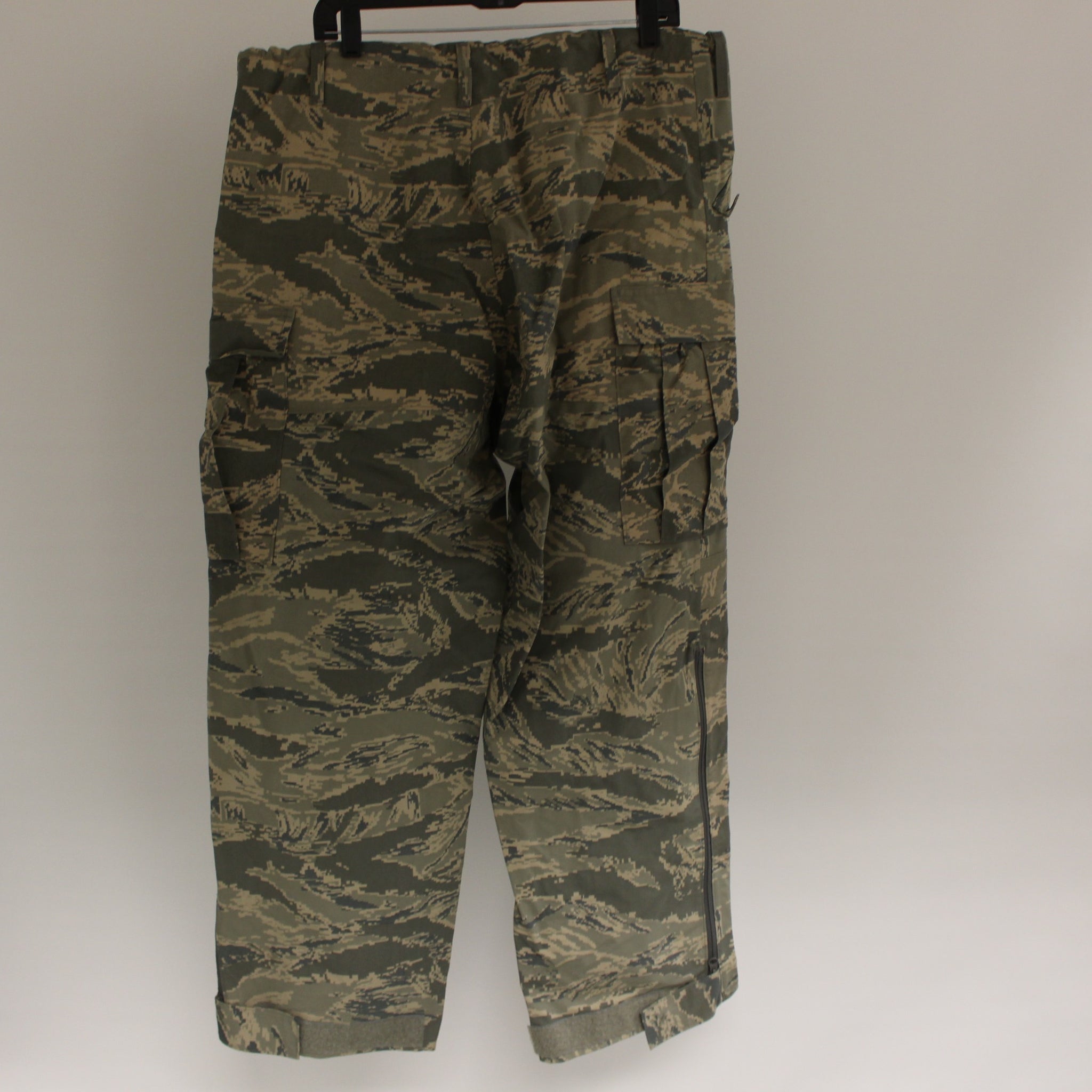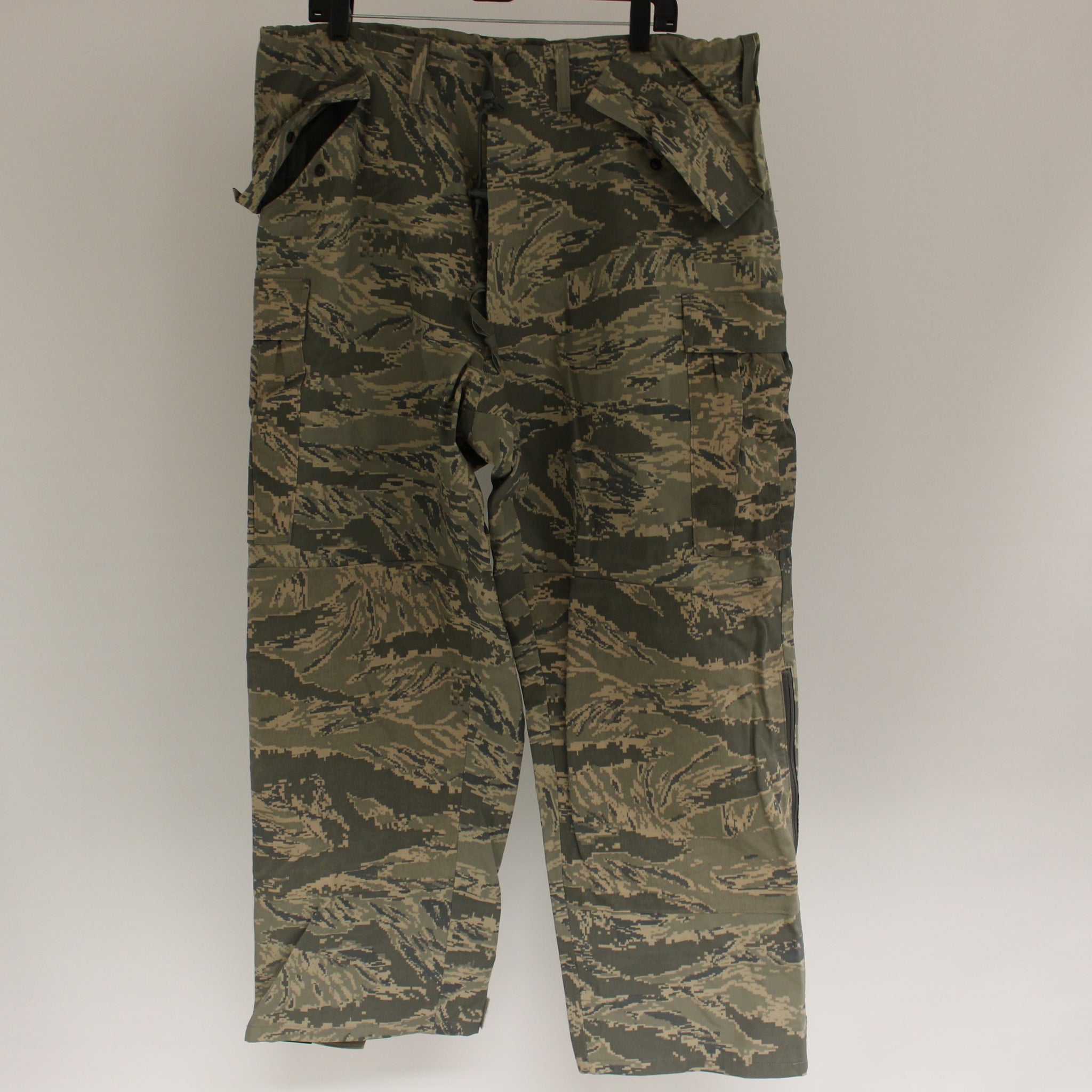 APECS All Purpose Environmental Trousers NSN 8415-01-547-2998 Size: Small Regular Inseam: 29 1/2 to 32 1/2 inches Waist: 27 to 31 inches Pattern: USAF Digital Tiger Stripe Camouflage Used - Good Condition