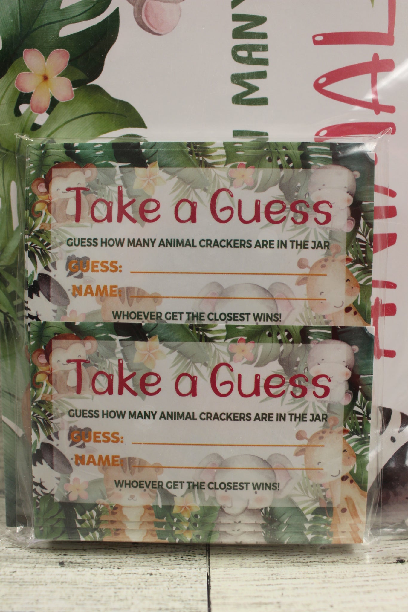 Guessing Animal Crackers Baby Shower Party Game Cards