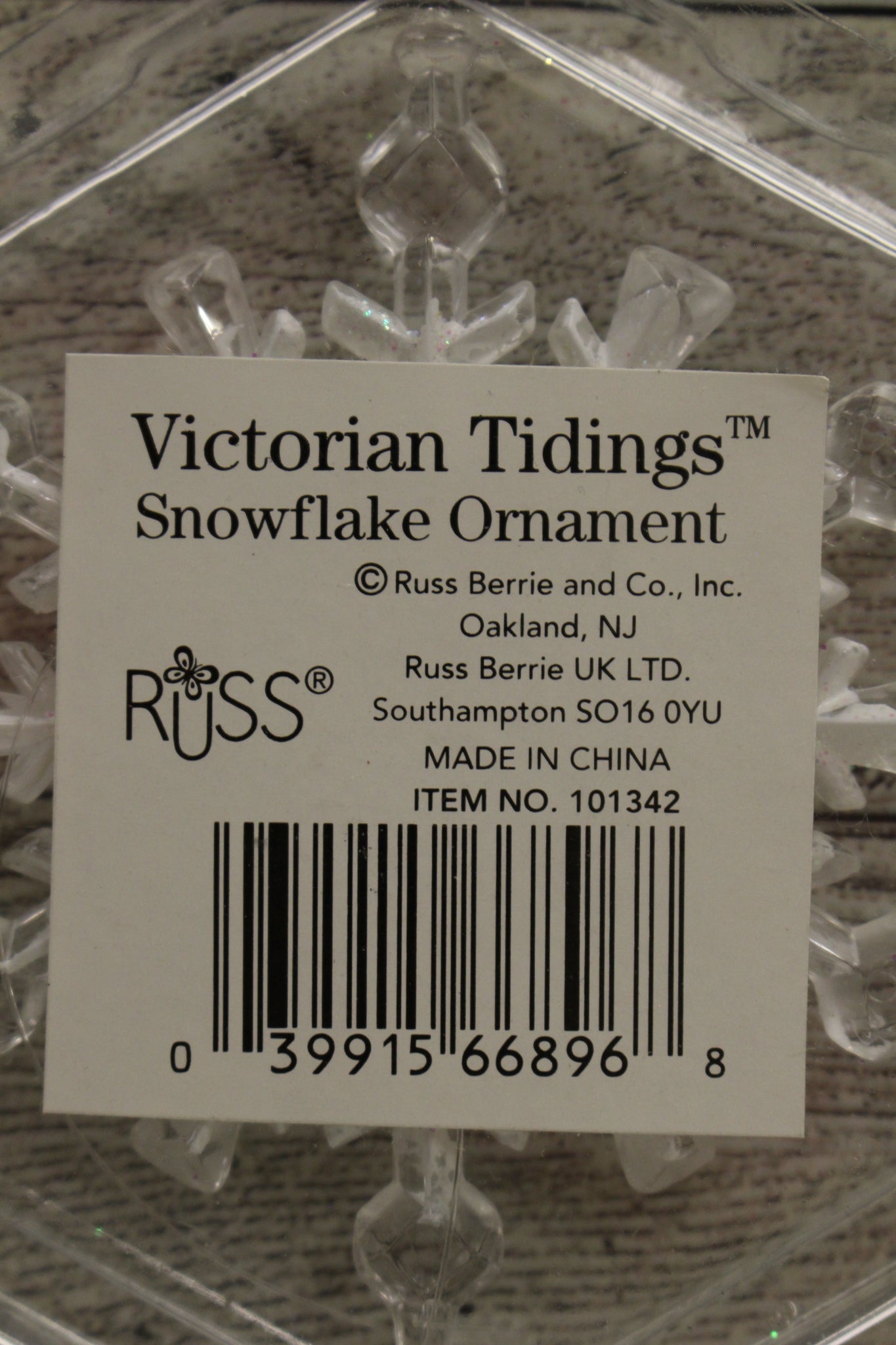 Russ Victorian Tidings Snowflake Ornament - New