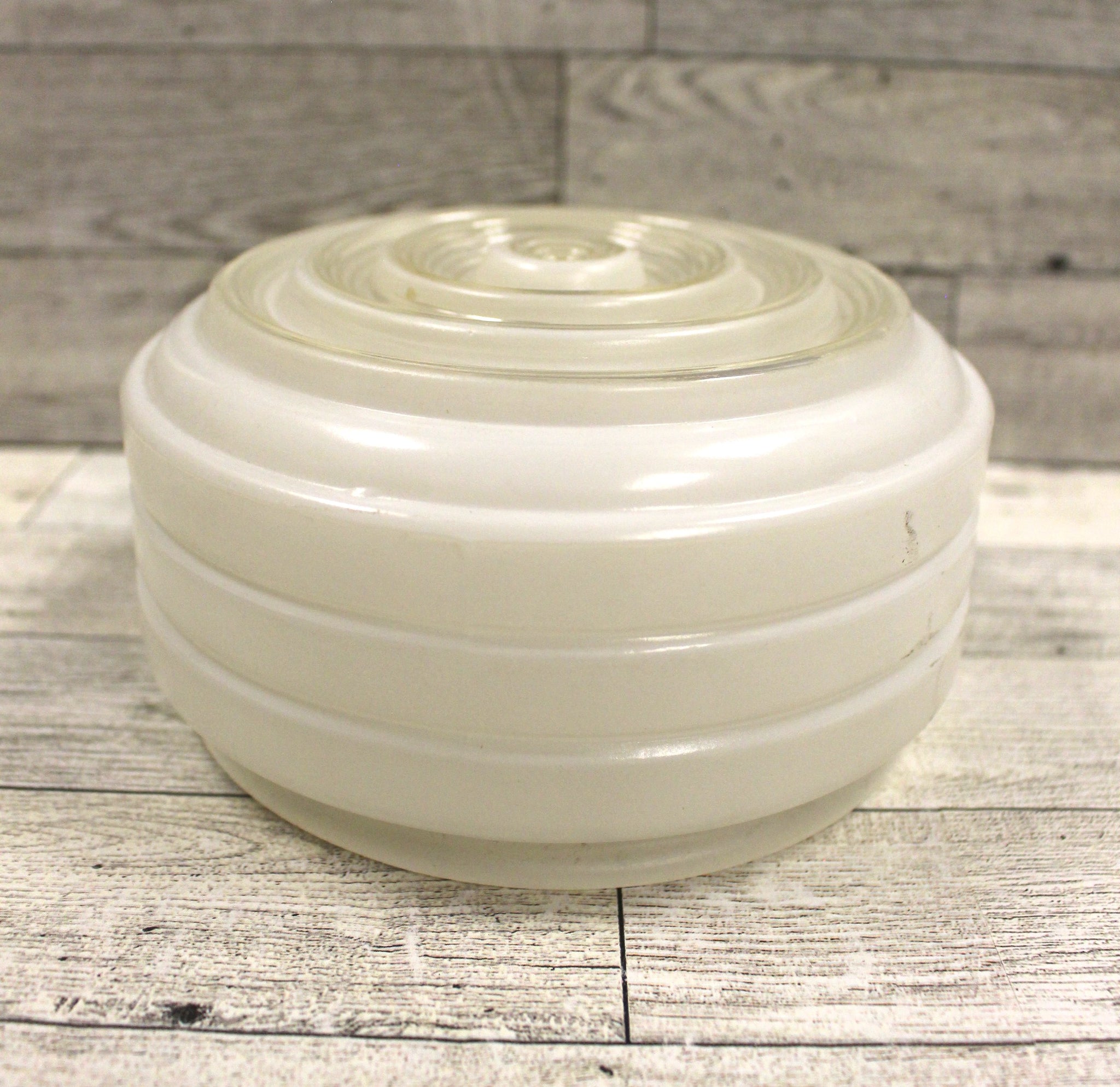 Vintage Retro Flush Mount Glass Ceiling Light Shade Drum White Shape: Round Height: 3" Width: 6.5" Condition: Used, in good condition.