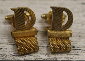 Vintage Dante "D" Monogram Initial Letter Mesh Wraparound Cuff Links - Used