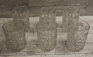 Set of 6 Crystal Starburst Old Fashion Glasses Cups - Clear - Used