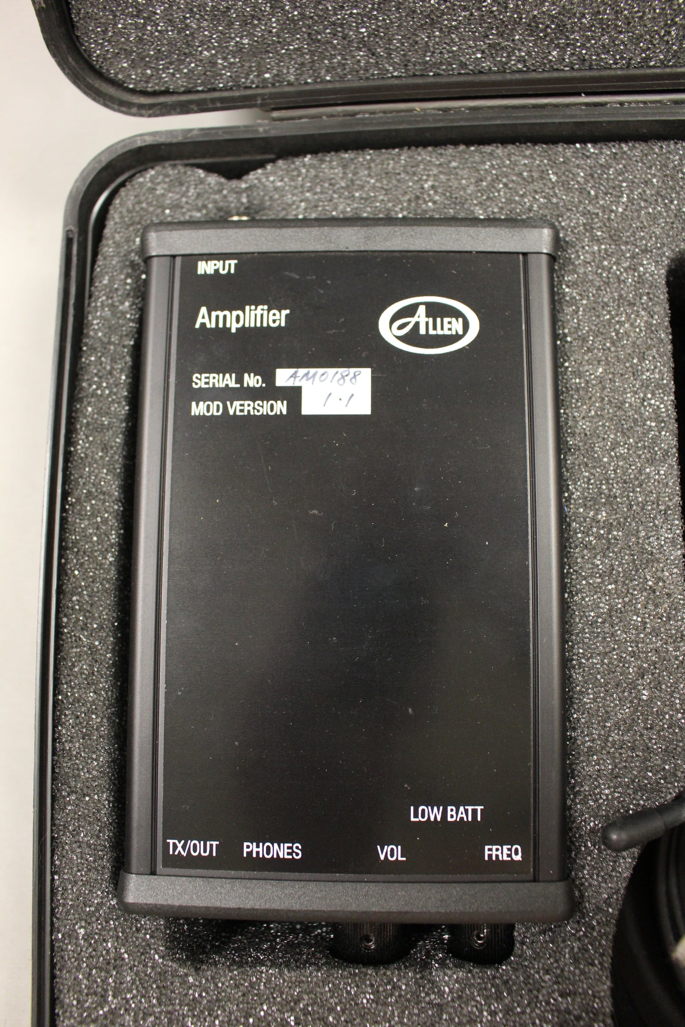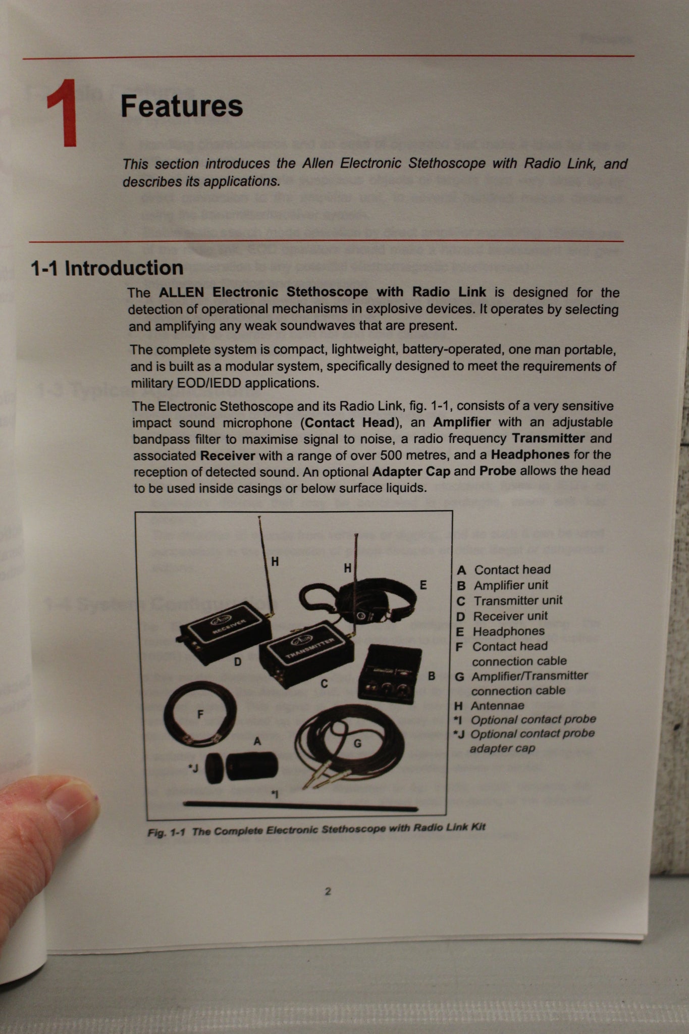 The Allen Electronic Stethoscope with Radio Link is designed for the detection of operational mechanisms in explosive devices. It operates by selecting and amplifying any weak soundwave that are present.
