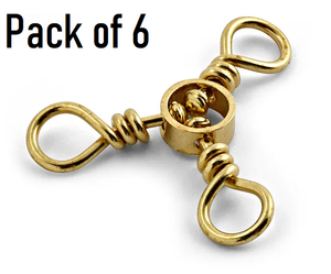 Hurricane Salt Tackle Brass 3-Way Swivel - TWS6-6 - Size: 6 - Pack of 6 - New